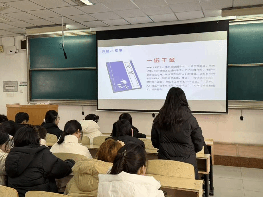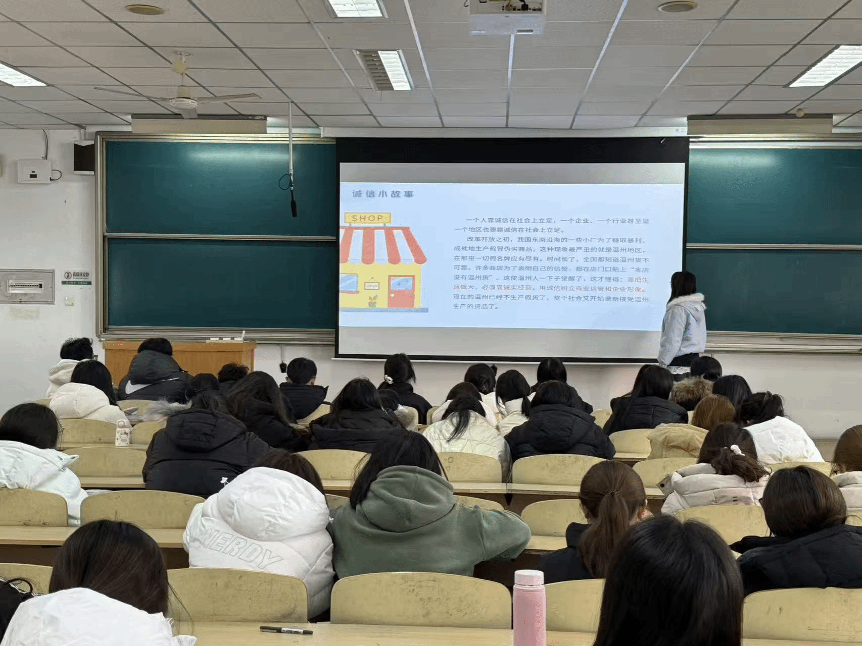 团支书通过解读诚信相关要求、分析校园诚信案例,比如课堂作业独立完成不抄袭、答应同学的小事及时兑现、考试拒绝夹带和传抄等贴近日常的场景,这些看得见、摸得着的场景让同学们深刻体会到,诚信并非抽象的道德口号,而是贯穿在学习生活每一处的具体行为准则。