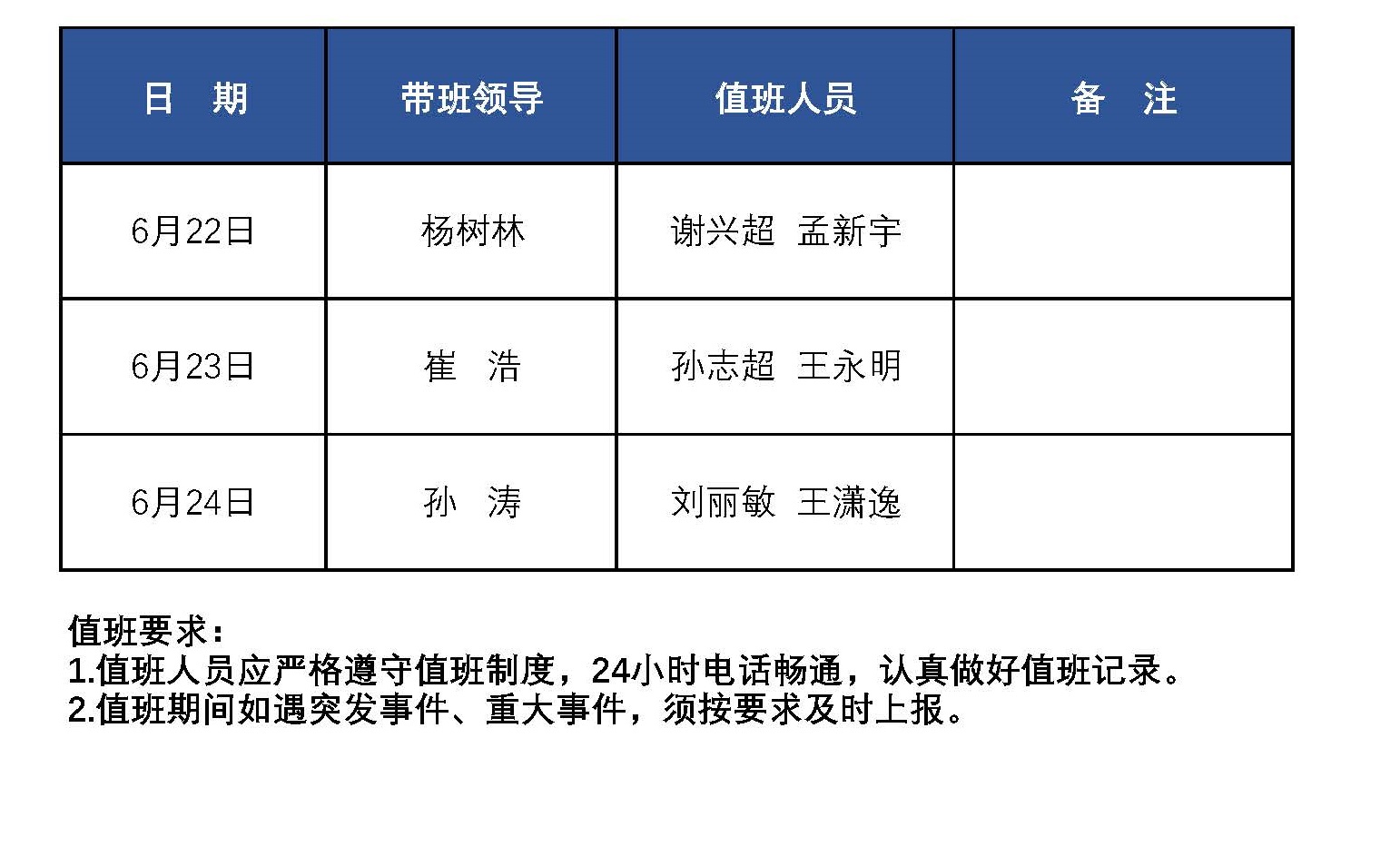 2023年端午节假期值班表