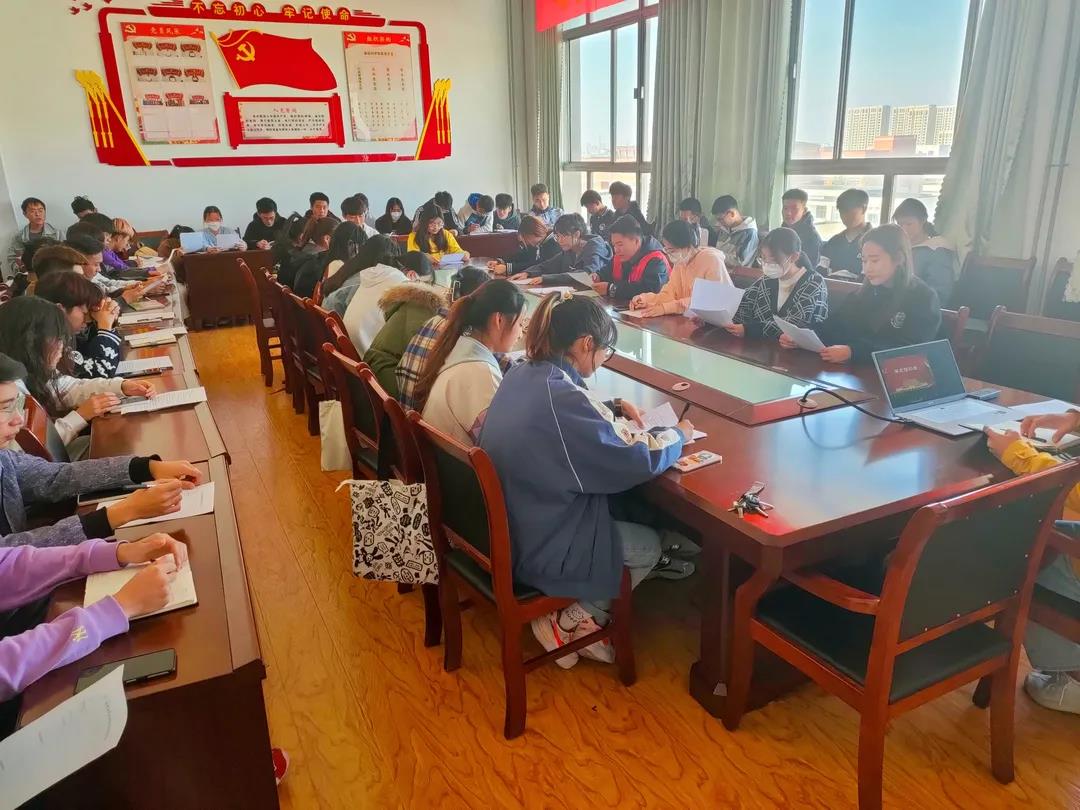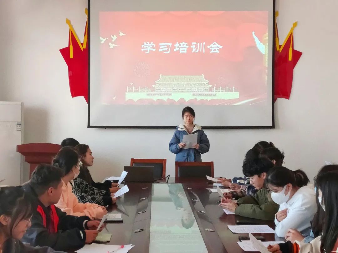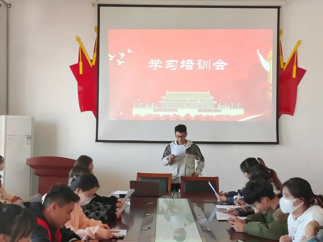 主持人宣布学习培训会开始,各学生代表上前宣读学习材料,后参会人员自主学习完成。