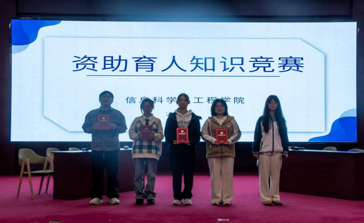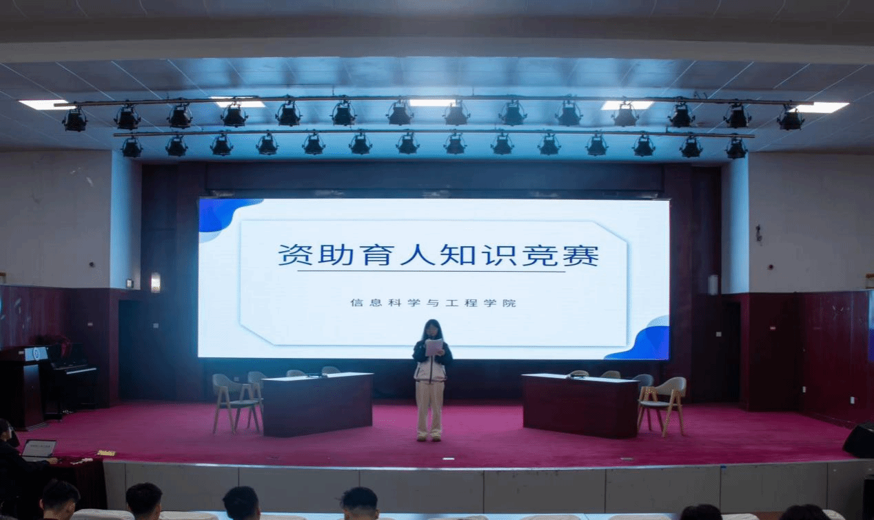 山东石油化工学院信息科学与工程学院于2025年11月13日下午,在学院音乐厅举办“资助政策入人心,励志逐梦共成长”资助育人知识竞赛。本次竞赛以强化学生对资助政策的认知、传递感恩励志精神为核心,多支队伍参加此次知识竞赛,通过多轮比拼决出最终名次,现场氛围热烈有序。